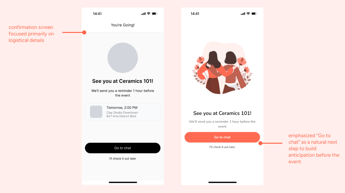 Meetup: While event-based connections were promising, the platform lacked the safety and intentionality women want. The broad demographic wasn’t optimal for women’s connection building.