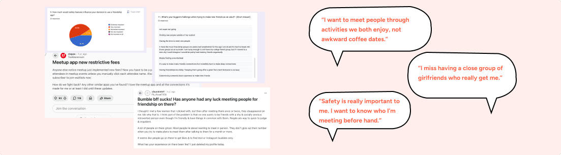 I launched a survey and conducted interviews to learn more about what factors contributed to women feeling socially isolated and what they looked for when making friends as an adult.